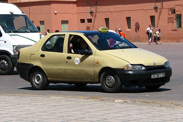 First, in Marrakech you need to get a small taxi (called ”petit taxi”) and have it drop you off at a second taxi stand area for the main leg of the trip. If you simply tell the petit taxi driver that you want to go to Amizmiz (pronounced AMZ-meez ), he should take you to the right place. The cost will depend upon where you pick up the petit taxi, since these taxis have meters. Petit taxis can only hold three passengers besides the driver, so if you are a larger group, you may need two or three of them.